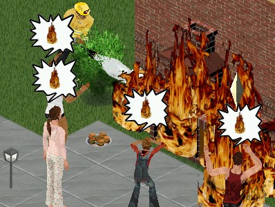Und dann rennt er zum Grill, wo Orion und Joanna, und zu meiner