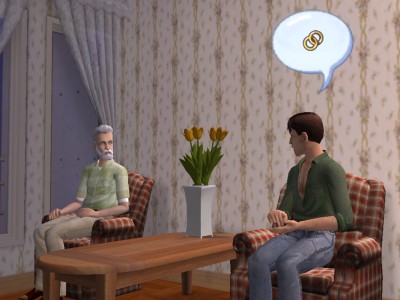 Beide setzen sich auf die Couch und schweigen eine Weile. "Ich